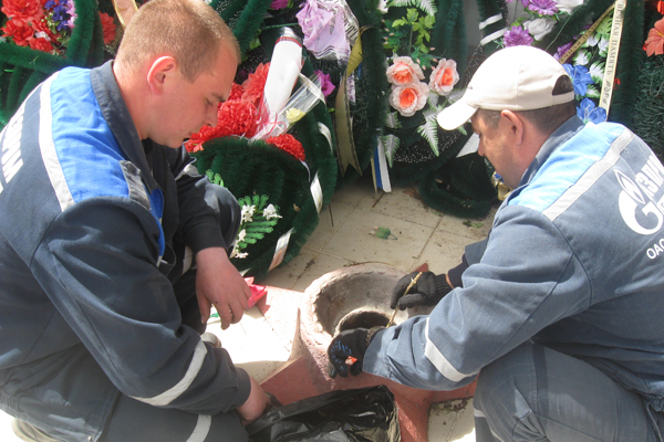 Подготовка памятников стала ежегодной традицией для ОАО «Челябинскгазком». На протяжении нескольких лет работники компании за несколько недель до празднования дня Великой Победы очищают газовые горелки от мусора, проверяют целостность подводящего газопровода, при необходимости проводят ремонт оборудования.