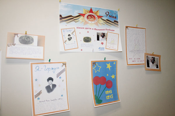 Накануне дня празднования Победы в Великой Отечественной войне стены офиса ОАО «Челябинскгазком» были украшены поздравительными открытками, подготовленными детьми работников компании.