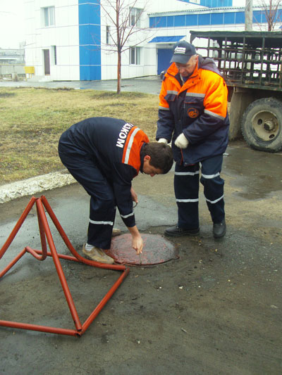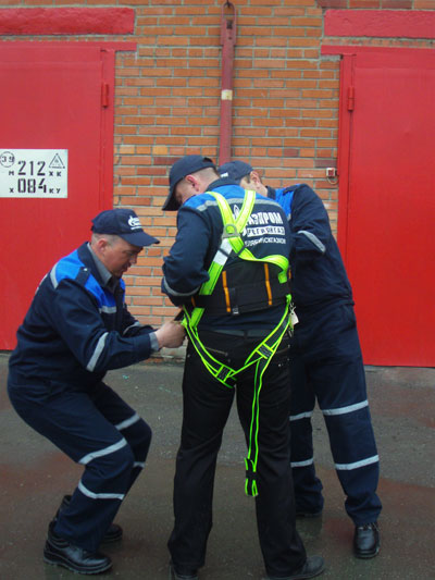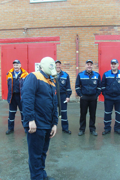 В завершении теоретических занятий работники компании перешли к практическим. От каждой службы были выбраны трое представителей, которые приняли участие в конкурсе «Правильное использование средств индивидуальной и коллективной защиты». Жюри оценивало правильность и быстроту действий работников, которым необходимо было надеть противогаз и спасательный пояс, а затем спуститься в газовый колодец.