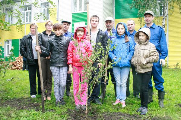 Вторая часть мероприятия – это озеленение территории детского дома. Вместе с газовиками ребята выкопали ямки под саженцы, насыпали в лунки удобрения и посадили на территории учреждения несколько березок.