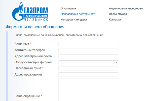 На официальных сайтах ОАО «Газпром газораспределение Челябинск» (зона обслуживания – Челябинская область) и ОАО «Челябинскгоргаз» (зона обслуживания – город Челябинск) открыты «прямые линии» с потребителями газа Южного Урала.