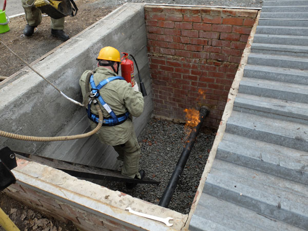 На первом этапе были проверены теоретические знания работников АДС. Практическая часть состояла из проверки мастерства водителя автомобиля, установки заглушки во фланцевое соединение и отключения жилого дома от газоснабжения. Также газовики устраняли утечку в загазованном колодце, тушили пламя и устанавливали бандаж на поврежденный газопровод.